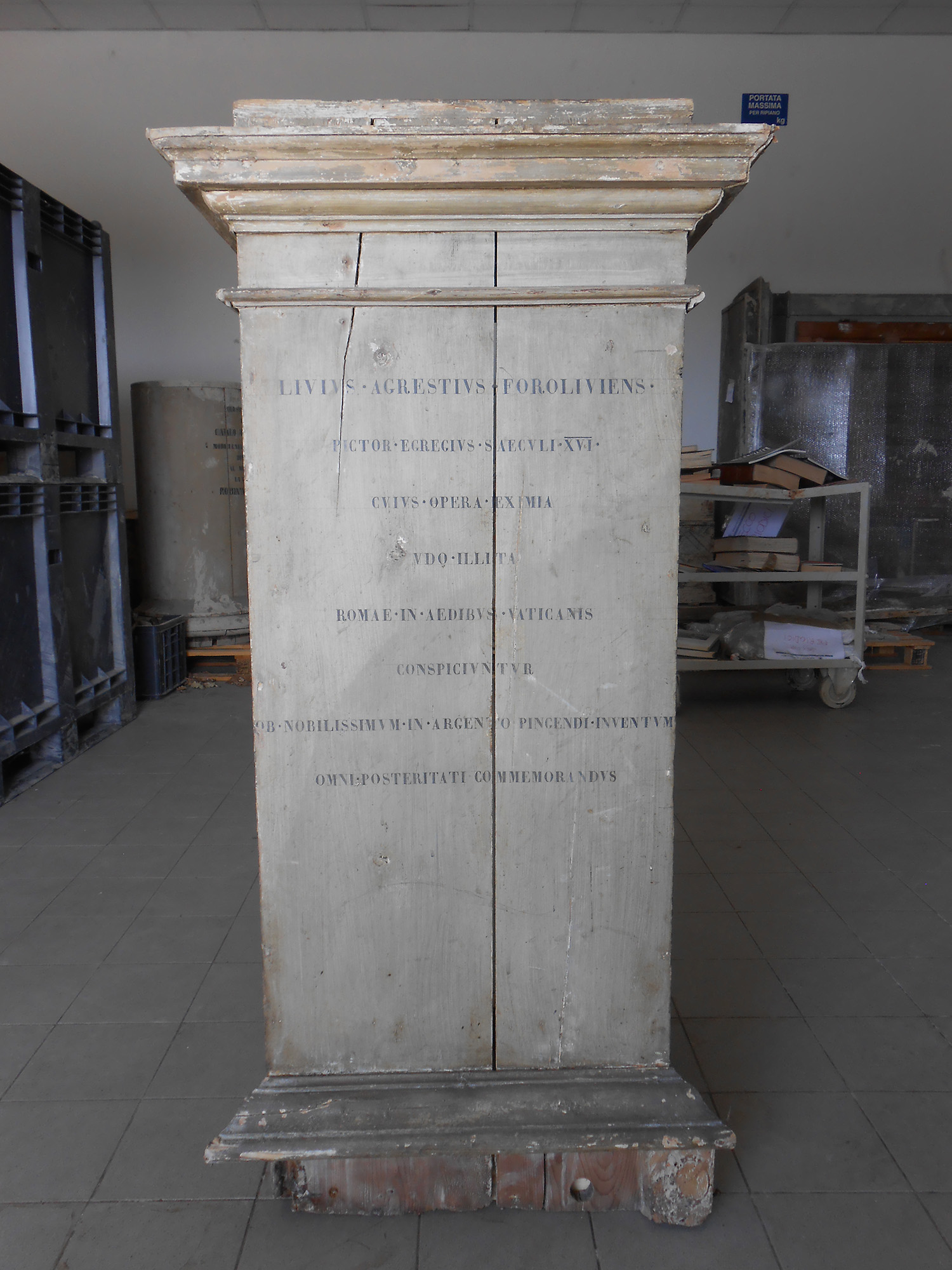 Le basi lignee erano interessate da forti sconnessioni strutturali, ammaccature, lacune, distacco di frammenti e conseguente perdita di materiale a causa degli urti e dei ribaltamenti prodotti dalla forza dirompente dell’acqua durante i giorni dell’alluvione.
